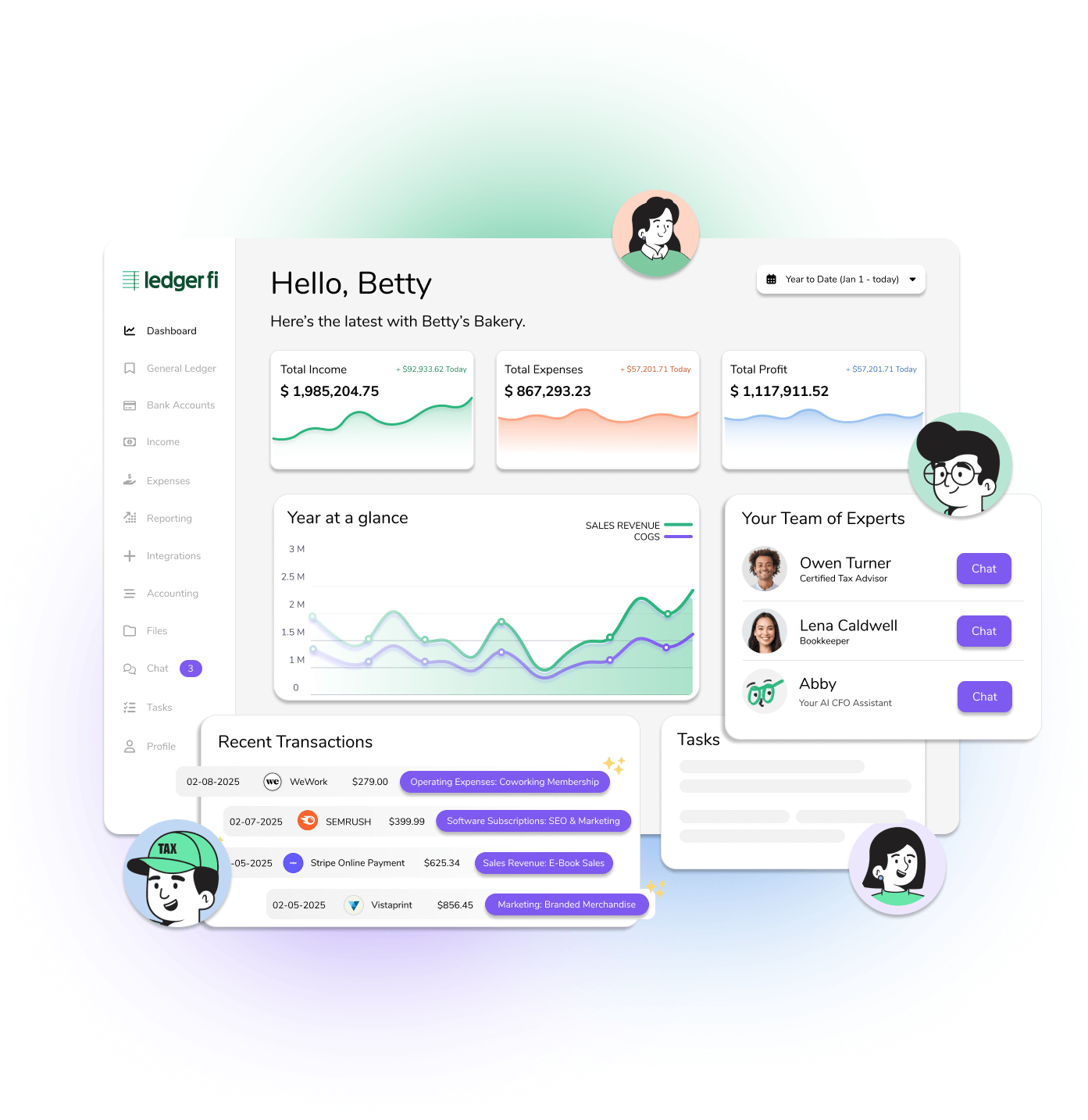 At LedgerFi, we provide expert tax coaching to help you make informed decisions every month and plan ahead for your year-end tax bill. Abby is backed by tax experts who help ensure your business stays compliant and financially ready for what’s next.